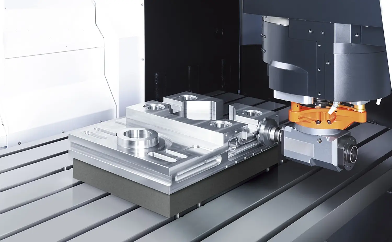 一度のセッティングで多面を高精度に加工できるため、